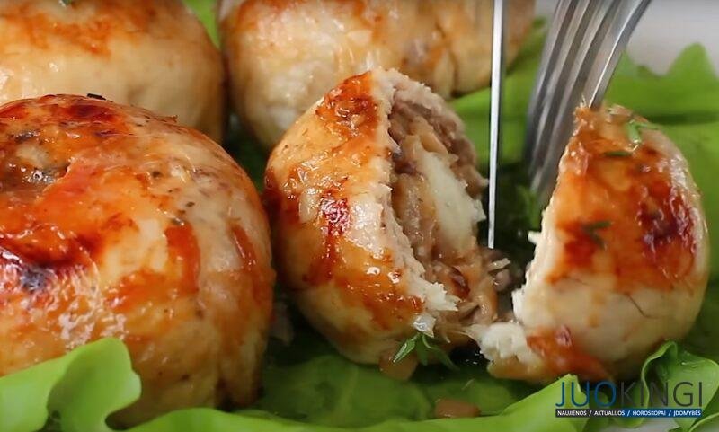 Šį patiekalą galima patiekti su bet kokiu garnyru. Gausite skanius vištienos kukulius su sūriu ir grybais.